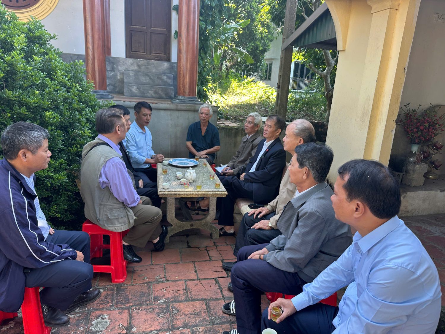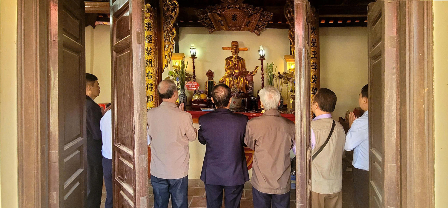 Đoàn đã vào Đền làm lễ dâng hương kính cẩn Sử thần Ngô Sĩ Liên, sau đó ra thắp hương tại Văn chỉ nơi đặt bia di tích danh nhân. Tiếp đó, các vị chủ nhà đã mời đoàn vào đình làng cạnh đó uống nước và làm việc.
