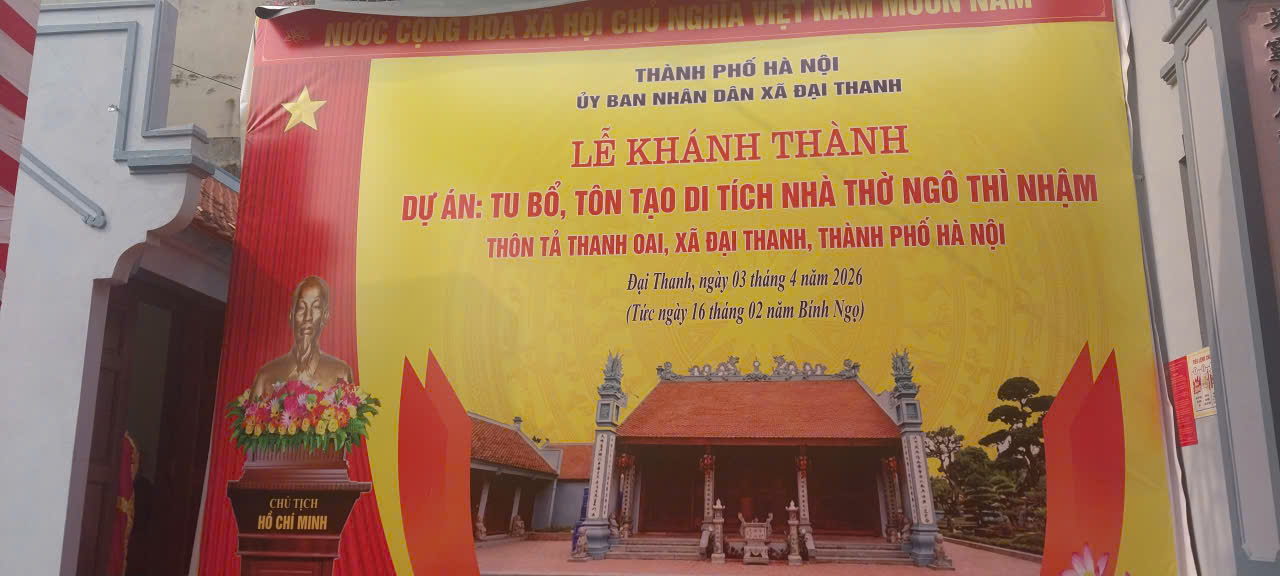 Ngày 3/4/2026, tại thôn Tả Thanh Oai, Đảng ủy - HĐND - UBND xã Đại Thanh, thành phố Hà Nội đã long trọng tổ chức Lễ cắt băng khánh thành công trình tu bổ, tôn tạo quần thể khu di tích lịch sử Đền thờ và Lăng mộ Danh nhân Văn hóa Ngô Thì Nhậm.
