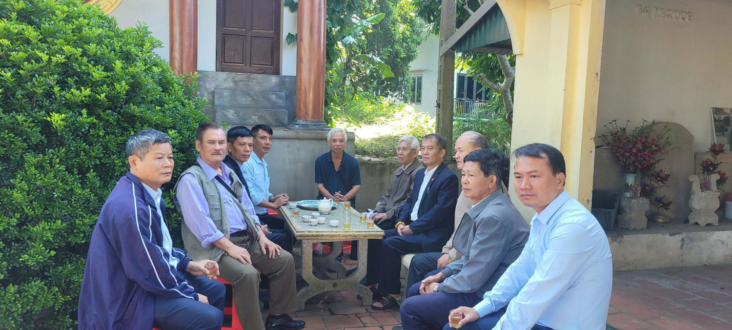 Đoàn đã vào Đền làm lễ dâng hương kính cẩn Sử thần Ngô Sĩ Liên, sau đó ra thắp hương tại Văn chỉ nơi đặt bia di tích danh nhân. Tiếp đó, các vị chủ nhà đã mời đoàn vào đình làng cạnh đó uống nước và làm việc.