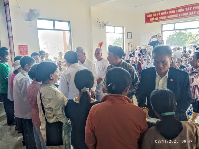 Điểm đến cuối cùng là xã Thủy Phú (cũ), phường Hương Thủy. Đoàn đã trao 200 suất quà cho bà con họ Ngô khu vực Phú Bài và Hương Thủy, nơi chịu ảnh hưởng nặng trong đợt lũ vừa qua.