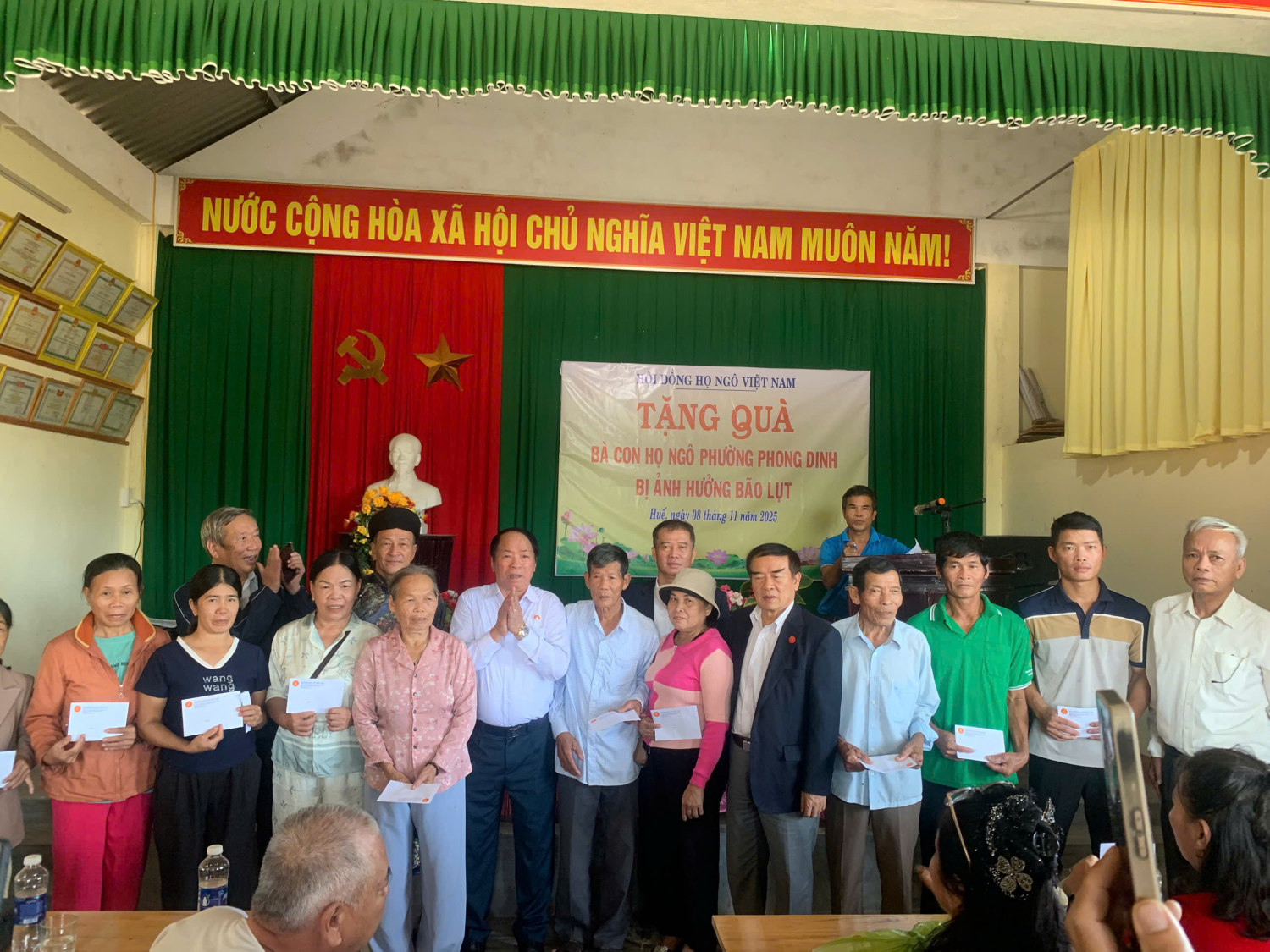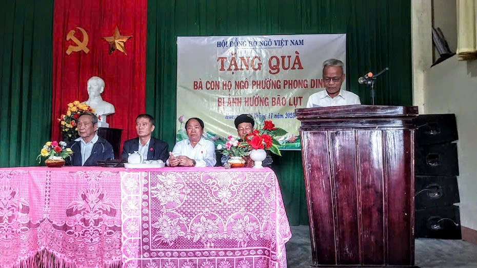 Nhằm chung tay sẻ chia khó khăn sau mưa lũ với các gia đình, bà con họ Ngô tại TP Huế, Đoàn công tác Hội đồng họ Ngô Việt Nam do ông Ngô Văn Sơn, Chủ tịch Hội đồng làm Trưởng đoàn, cùng các Phó Chủ tịch: Ngô Văn Tuấn, Ngô Quang Xuân, Ngô Hữu Minh; Chánh văn phòng Ngô Văn Dần đã trực tiếp tới thăm hỏi, trao quà cho các hộ gia đình họ Ngô tại nhiều địa phương của TP Huế. Ông Ngô Phước Toàn, Chủ tich Hội đồng họ Ngô thành phố Huế và một số thành viên khác cùng tham gia đoàn.