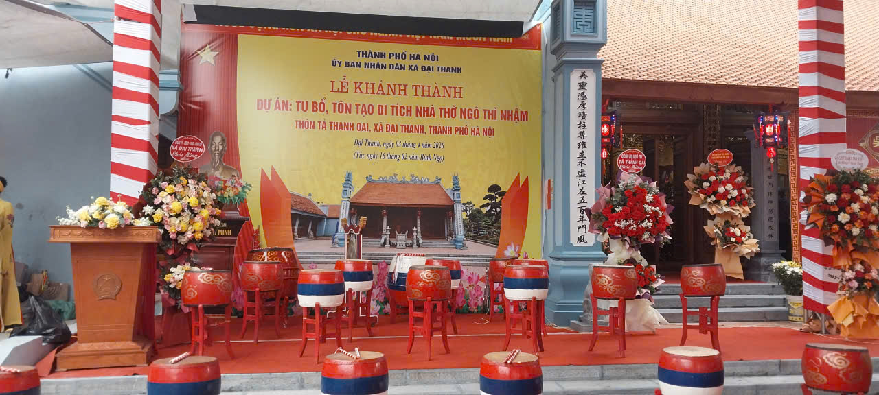 Ngày 3/4/2026, tại thôn Tả Thanh Oai, Đảng ủy - HĐND - UBND xã Đại Thanh, thành phố Hà Nội đã long trọng tổ chức Lễ cắt băng khánh thành công trình tu bổ, tôn tạo quần thể khu di tích lịch sử Đền thờ và Lăng mộ Danh nhân Văn hóa Ngô Thì Nhậm.