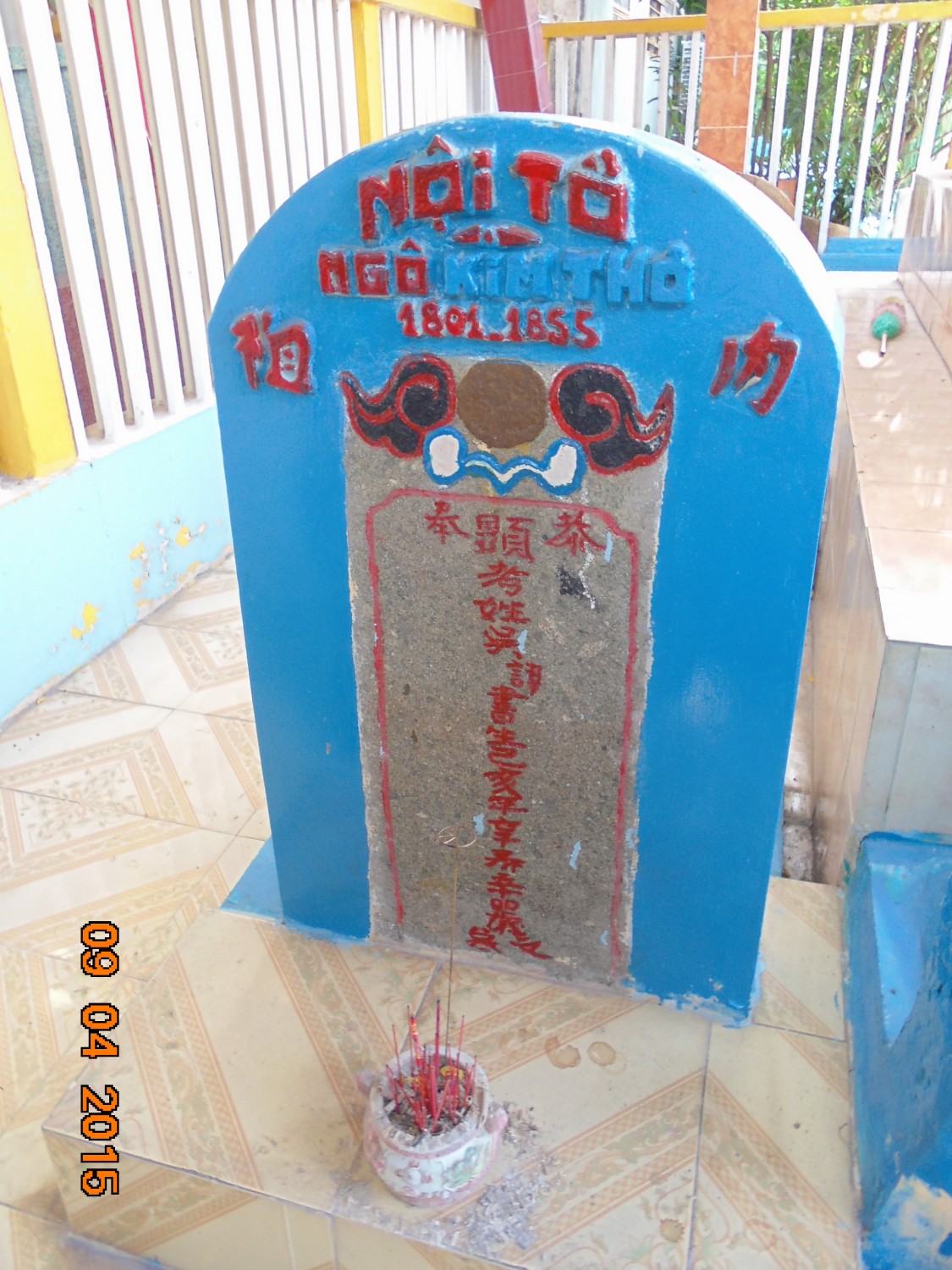 Ngô Kim Thơ là đời thứ hai, con trai cụ Ngô Kim Tây. Trong nội dung làm việc với đại diện gia đình, không ai nhớ rõ năm sinh, năm mất của cụ cũng như cụ bà là ai. Tuy nhiên sau khi ra khảo sát khu vực mộ chí, chúng tôi thấy có một hàng 4 bia mộ. Tính từ trái qua phải, bia thứ ba là mộ bà Đỗ Thị Ngọc, bia thứ tư là mộ ông Ngô Kim Đính (2 mộ này đã rõ). Bia thứ nhất ghi “Hiển khảo tính Ngô, húy Thơ …” Đây là mộ cụ Ngô Kim Thơ. Bia thứ hai ghi “Hiển khảo Nguyễn Thị Thể hưởng thọ 63 tuổi …”. Mới đầu chúng tôi tưởng là đã chuyển nhầm mộ ai đó vào đây, nhưng nghiên cứu kỹ thì thấy cụ Nguyễn Thị Thể chính là cụ bà, vợ cụ Ngô Kim Thơ. Do người lập bia chưa hiểu tường tận nghĩa của từ “Hiển khảo” (tên gọi cha đã mất) nên đã ghi như vậy. Lẽ ra phải ghi là “Hiển tỷ” mới đúng. Ngay năm sinh của các cụ cũng ghi chưa chuẩn xác. Bia mộ cụ Ngô Kim Thơ phía trên ghi năm sinh 1801, nhưng bên dưới lại ghi sinh năm Kỷ Hơi. Kỷ hợi là năm 1839, cụ bà sinh năm Quý Mão (1843), hai cụ chênh nhau 4 tuổi như vậy là hợp lý.